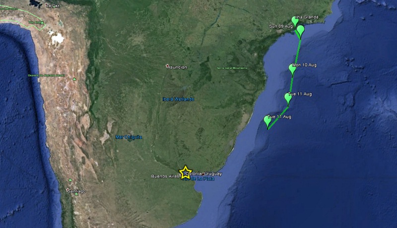 un 6 de agosto, un dia despues de mi cumpleaños, Isabel y yo nos encontramos con el capitan Fede y Eduardo en el Piratas mall de Angra dos Reis, hicimos los papeles correspondientes y al otro dia zarpamos rumbo a Colonia, Uruguay, pero antes no nos podiamos ir sin hacer un poco de snorkel y tomar sol en en playas de arena blanca. La primer parada fue en bothiñas donde un agua transparente pocas veces vista nos esperaba para poder poner en contacto piel con agua salada, peces de colores y de los no a colores, fondo de rocas, casi el paraiso mismo!. Luego de un largo disfrute levamos anclas y nos dirigimos a Lagoa Azul, donde tambien hicimos natacion y almorzamos unas pastas estilo mediterraneo. Pasado el mediodia levamos ancla nuevamente y nos dirijimos hacia la Villa principal de la Ilha Grande, Abrao, donde fondeamos al aterdecer para desembarcar a cenar bajo la luz de unas sombrillas de colores, en la playa misma. Luego de pasear por el “centro” (la playa!) regresamos al barco para un merecido descanso.