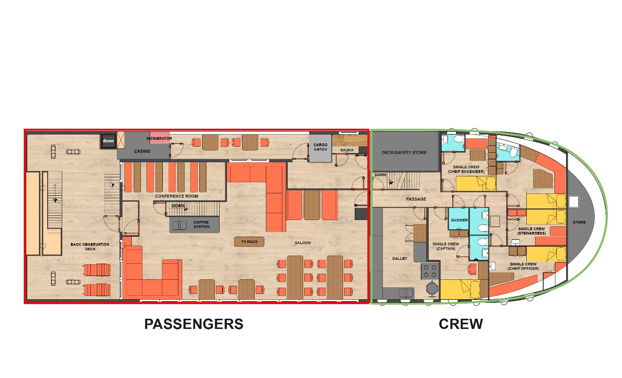 Common Areas | Deck saloon, bridge, top deck, aft deck, foredeck | |||