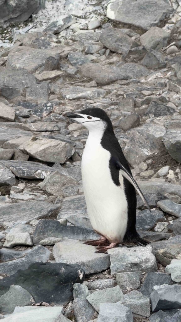 Stepping foot upon the rocky deserted beach, we prepare for our hike to explore the island as Alex begins his narration of what we are about to discover…a colony of Chinstrap and Gentoo penguins and other birds that call Half Moon Island their home.