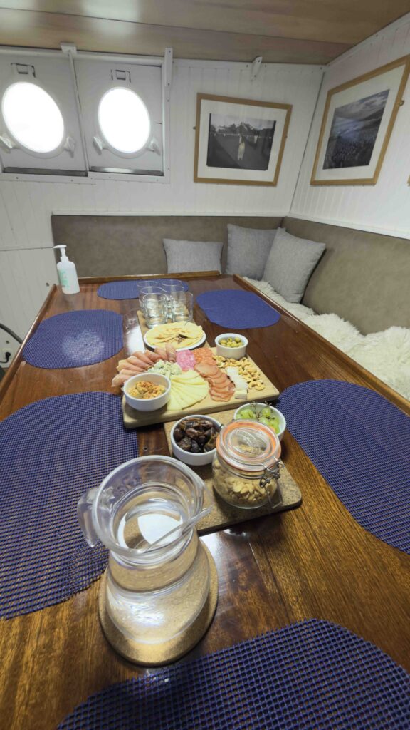 As we step back onto the ship, we’re greeted with refreshing Gin and Tonics and freshly harvested glacial ice. After an exciting first day in Antarctica, we enjoy a delicious dinner and cozy up in our comfortable bunk beds for a well-deserved rest.