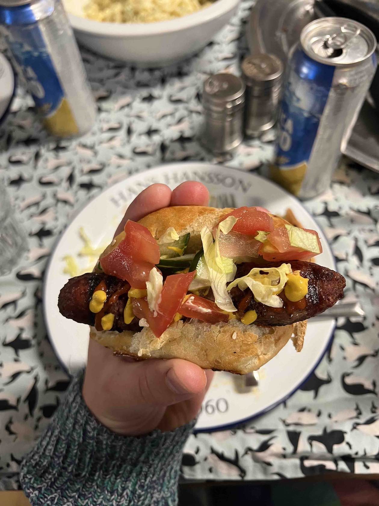 Back onboard the Hans, a “Mad Lekker” South African Braai and cold Antarctic lagers waited for us. Skyla and Naomi had prepared a feast of potato salad (slaai in South Africa), regular salad, burgers, brats, braai broodtjies (grilled sandwiches), and a South African malva pudding with custard for desert. I even found sufficient ingredients from the spread to create a small reminder of home: an Antarctic Chicago-style hotdog.