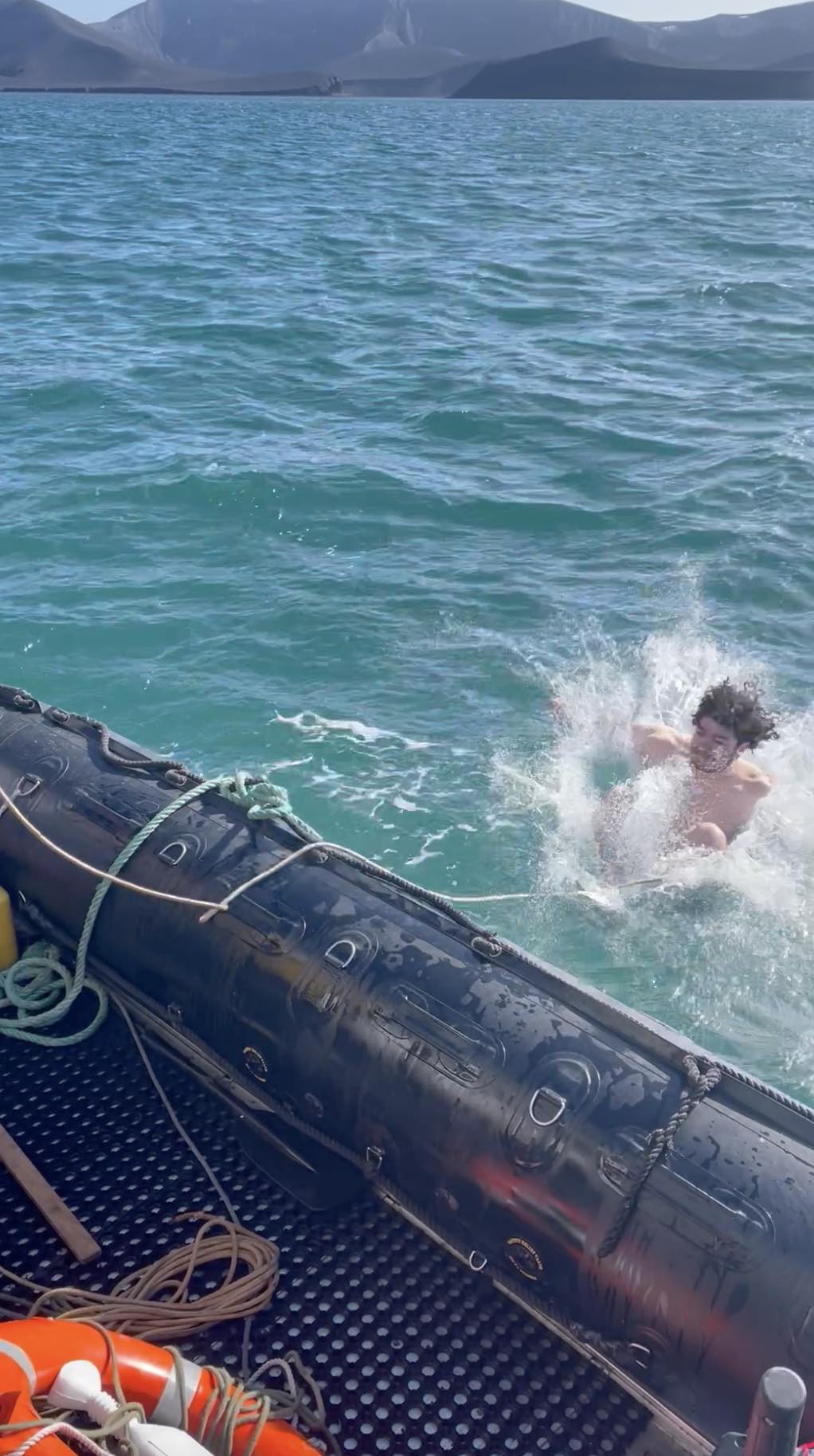 Our first landing at Pendulum Bay featured miles of black sands and the remains of the Chilean research facility that was all but disintegrated in the 1969 – 1970 eruptions. The heat from the magma below can be felt in the lapping tides on shore, and visibly seen as steam on the beach. I got some lovely footage of Bernadette doing her best Baywatch impression along the sands, shrouded in salty mist.
