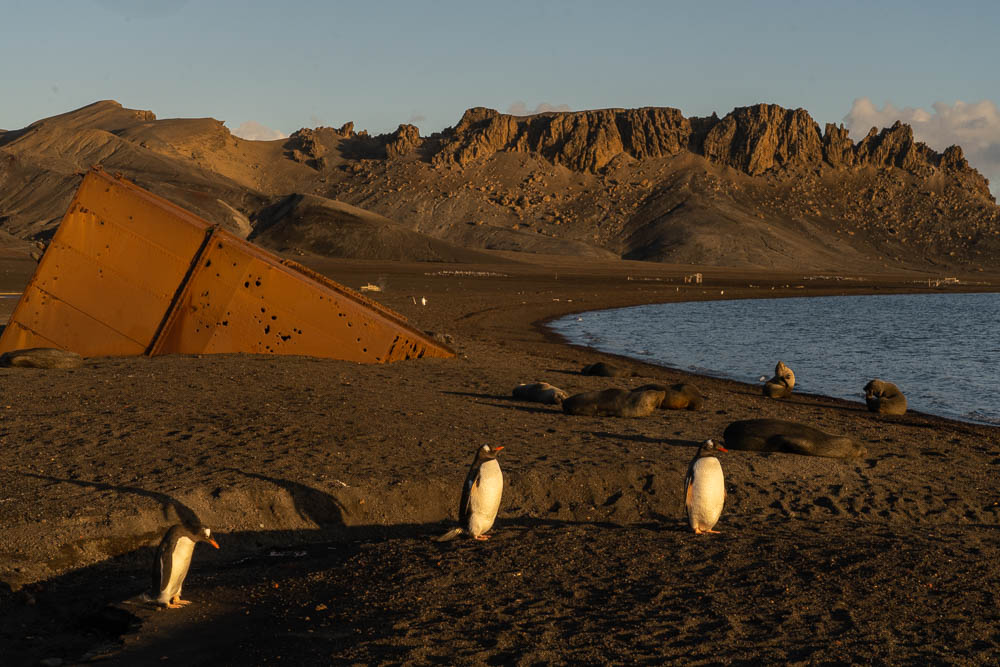 After a salty dip, and a less salty shower, it was time for our final landing of the day at Whaler’s Bay. We found a smattering of long-abandoned buildings, whale oil tanks, and rusting metal; a hollow reminder of humankind’s gruesome history with our cetacean friends.