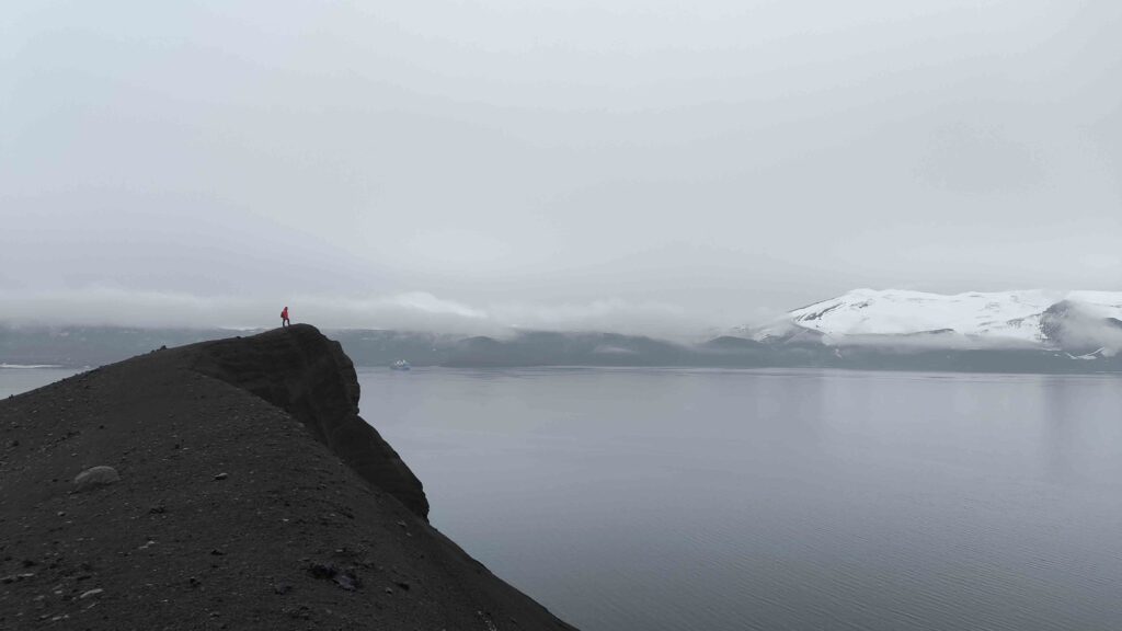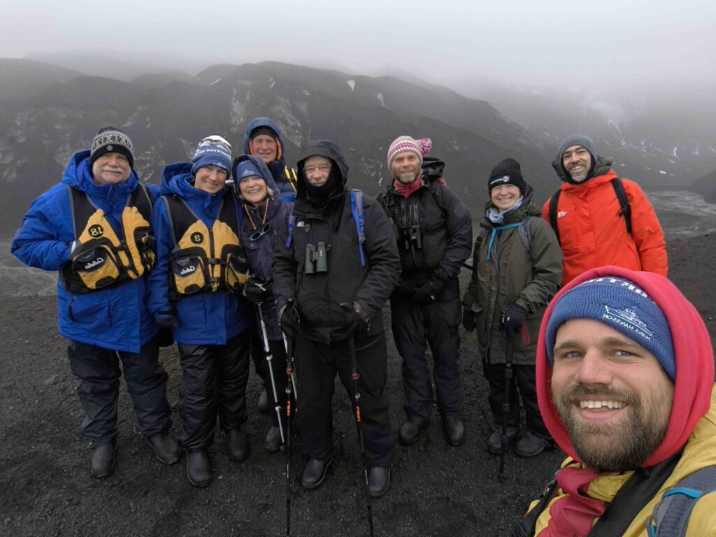 This after we made another shore landing this time in Stancombe cove. A small secluded bay at the western end of Port Foster. Guide Alex quickly head us trekking up The scoria slopes to the highest point in the bay. This time the cloud had lifted sufficiently to give us spectacular views across Port Foster. It was a time for reflection as our time in Antarctica has come to an end. It has been a truly amazing experience, there are no words to describe this remarkable place only memories that will last a life time.