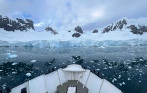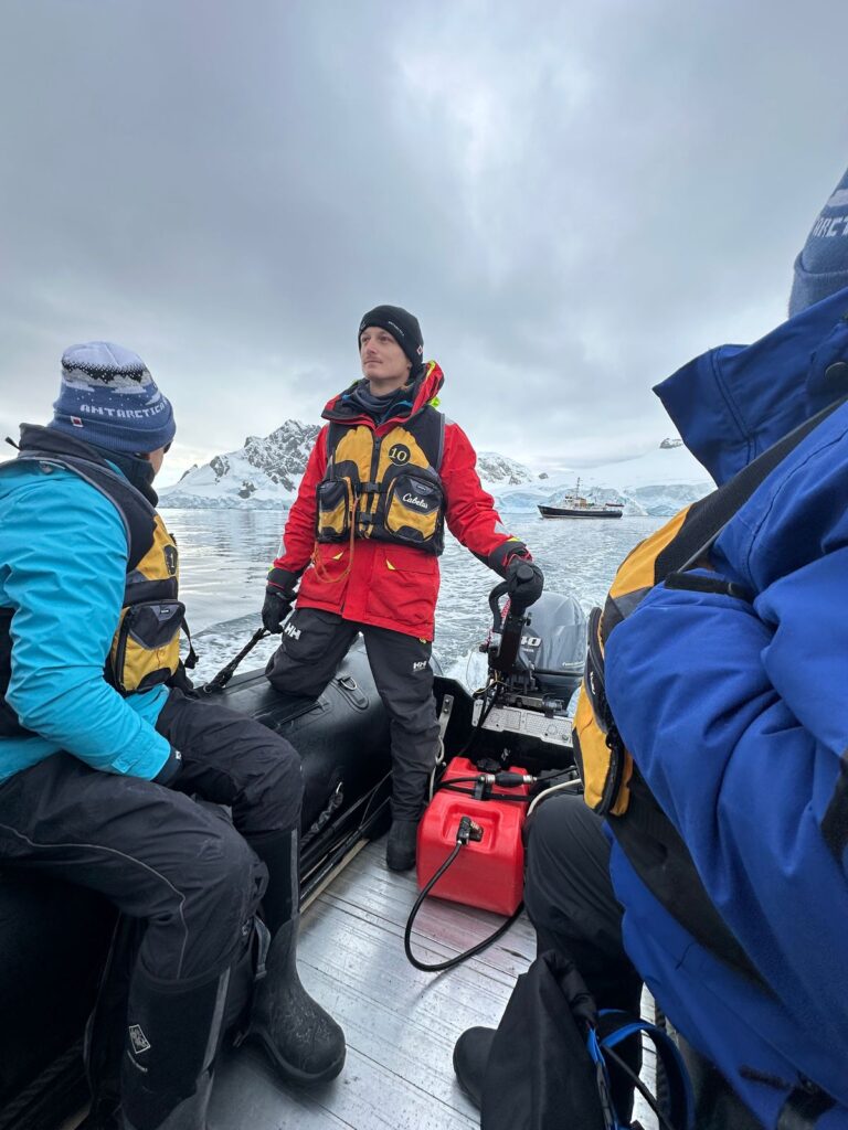 As we gather for our morning excursion at the stem of the Hans Hansson, we slip our feet into our muck boots for another day’s adventure. A passenger spots a humpback whale on the port side only meters from our little ship … All activity stops to watch the whale silently pass by us. The only sound is the whale’s breath. This majestic animal graced us with its presence for 10 minutes swimming around the boat before we all had to venture onwards in the zodiacs in search for more wildlife and scenery! It truly feels like being in another world!