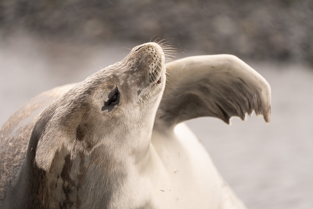 On Wednesday morning, we had a quick breakfast and the other passengers hopped into the zodiac to revisit the veritable zoo that was Yankee Harbor. Along the rocky shore they saw 7 elephant seals and a wedell seal. Not quite the flurry of activity from the day before, but still plenty to observe. Very happy with the footage I had captured at the same harbor the day before, I remained behind on the ship to bang out the last of my video interviews with the remaining crew members. A wise decision; the other guests returned positively soaked.