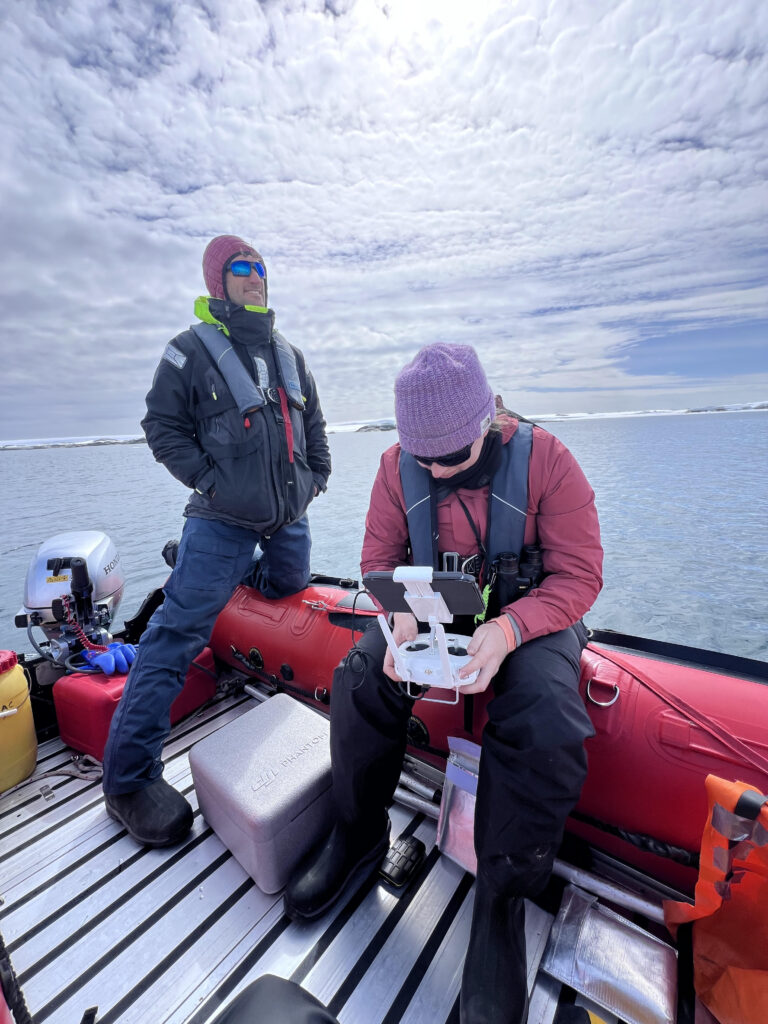Clare loved the excited, adventurous spirit of the passengers and crew. They always wanted to help, whether watching the drone to avoid skuas that may try to swoop the drone while Clare was focused on the ground below, or catching it from the air after a scan. She also enjoyed giving presentations and watching them apply her teachings. By the end of the trip, they could accurately differentiate between the three penguin species on the peninsula and make their own observations, like noticing how penguins lay no more than two eggs at a time.
